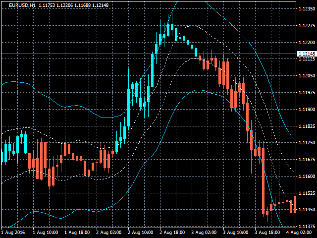 如果颜色是红色,即空头,等价格位于内层通道是开空,价格触及外层轨道则平仓。