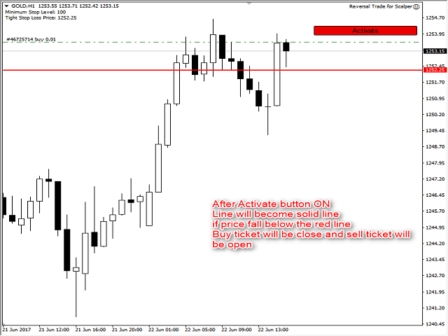 eg: Buy ticket opened, if price hit below red line, buy ticket will be close and sell ticket will be open (lot size based on EA parameter setting)