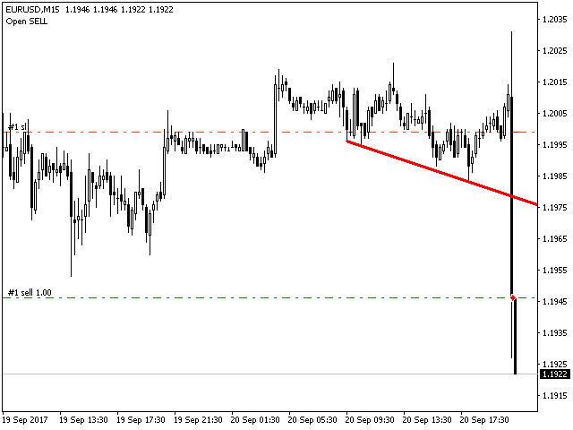 智能交易系统根据既定的趋势线进行交易。为此,您需要在价格图表上绘制一条趋势线而不更改其名称。趋势线的名称必须始终采用以下格式:“趋势线”空格和数字。安装线路时默认始终使用此名称,您无需对其进行编辑。