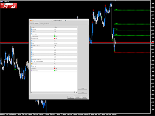 - Levels SL and TP - use or not use visual trade levels for stop loss and take profit