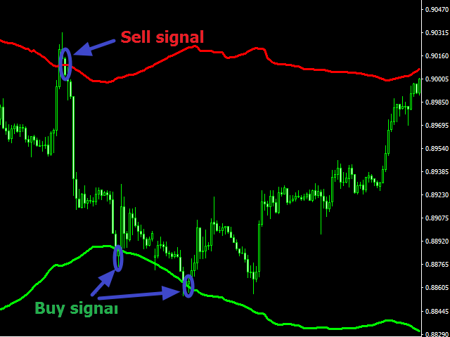 Open Sell orders when the price crosses the upper line of the indicator downwards.