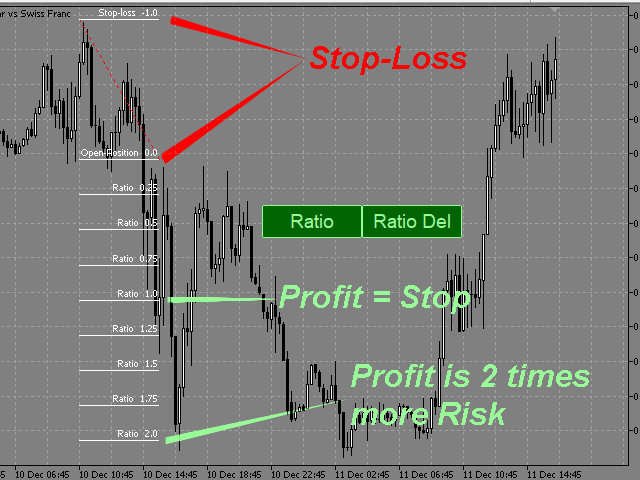 This indicator allows you to measure the profitability of each specific transaction (the ratio of Stop and Profit).