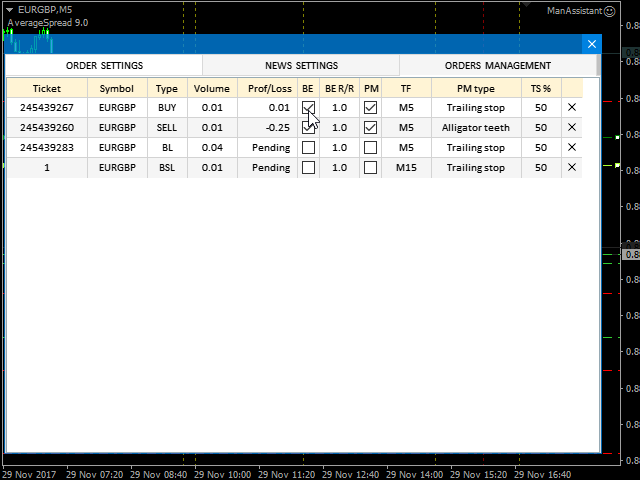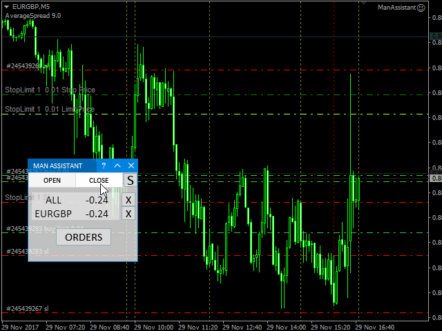 If you need an application without management of orders and positions, try Manual trading assistant Lite . There you can read about the main features of this application, while only the differences in the settings and management of orders and positions is described here.