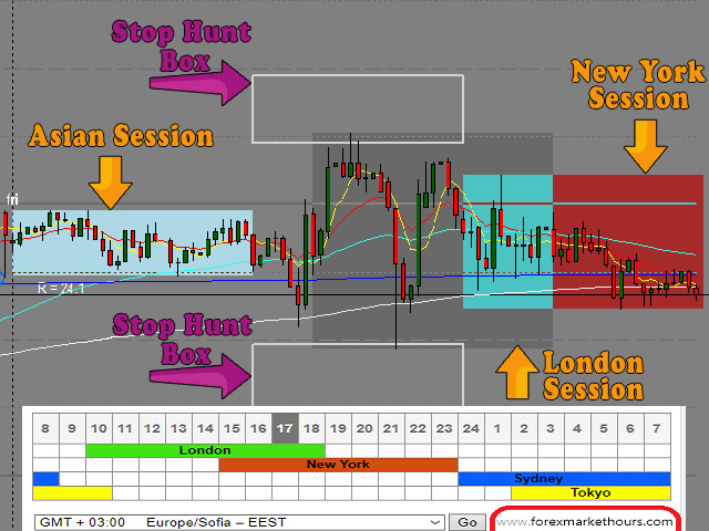 - It includes the Stop Hunt Boxes which shows pockets of liquidity, found at places where traders put their stop losses on existing positions.