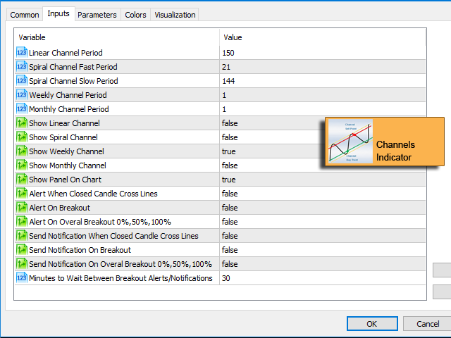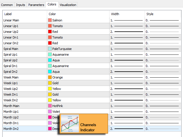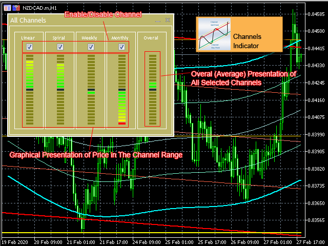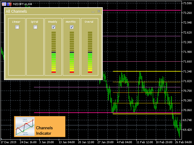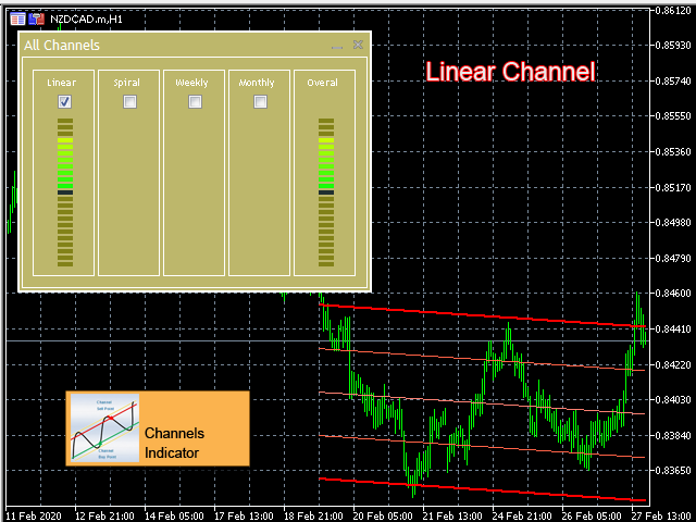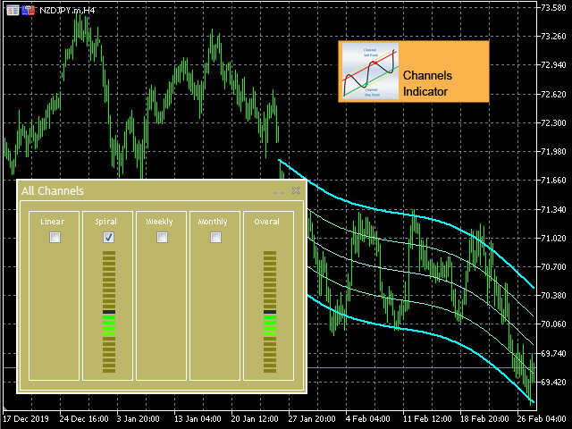 - Display 4 Types of Channels on chart : Linear, Spiral, Weekly, Monthly