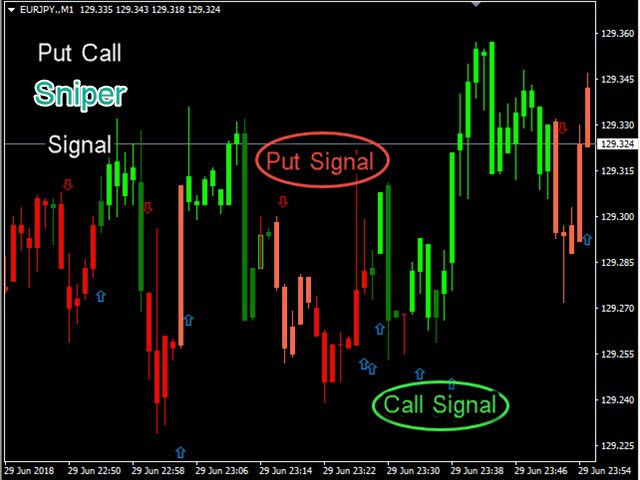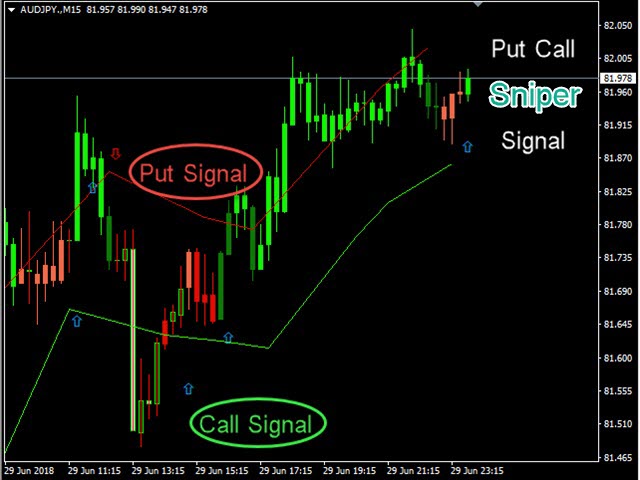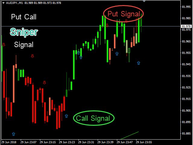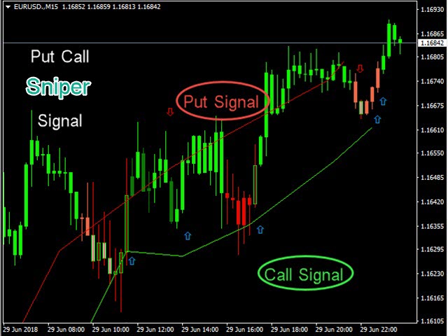 This indicator provides Put (SELL) and Call (BUY) signals for binary options on the M1-M15 timeframes.