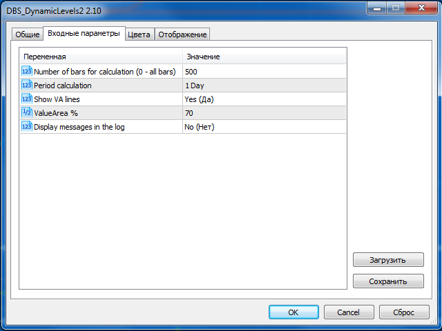 - Number of bars for calculation (0 - all bars) - the number of bars for calculating the indicator.