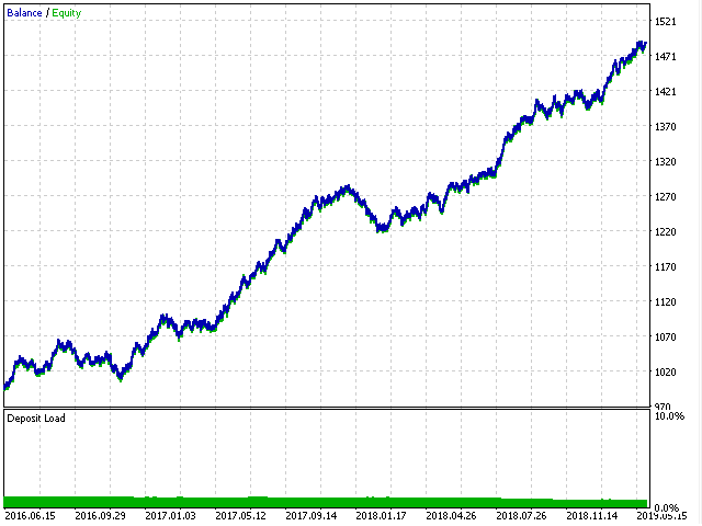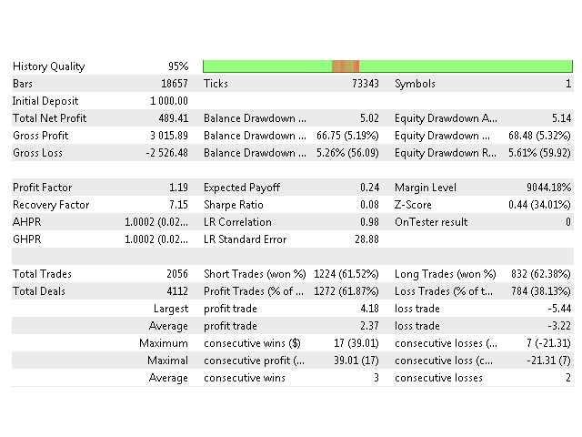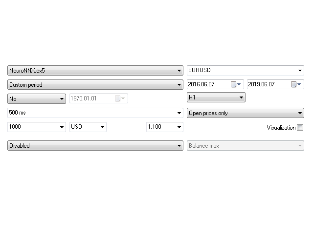 Very simple work on the principle of work. The elementary neural network is used, with the help of which the normalized RSI indicator is analyzed, the neural network has three outputs. One is responsible for the direction of trade, the other two for stop loss and take profit. Thus, by optimizing the coefficients of the neural network (this is the usual optimization using a genetic algorithm), we get a well-adapted network to work in the future. Sampling according to the results of optimization must be carried out according to the maximum profit and the minimum drawdown. It is necessary to work in proportion of at least 3 to 1. That is, we optimize for three months and work alone, at least. This is if you work on the period M5. If you work on the H1 period, then you need to optimize at least 2-3 years, and you can work for several months. Although it is better not more than one month. Optimization is desirable to carry out at least the control points. Or if you spent on the opening prices - then it is imperative to check at check points at the end. After the optimization, the best result must be saved in a file - and this will be your working set for real work. A bot is universal in the sense that it can work on any periods or on any currency pairs! Parameters of the bot are extremely simple.