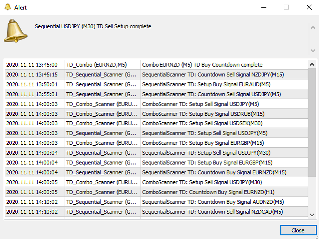 - It can scan for signals on MN1, W1, D1, H4, H1, M30, M15 ,M5, M1 timeframes