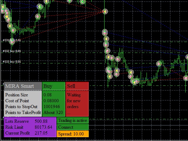 MIRA is an Expert Advisor built according to the principles of indicator-less short-term trading based on martingale with different protection levels and customization. It provides methods for reducing risks by fixing a part of profit by trailing stop, smoothing out the gaps by means of dynamic locking, automatic recovering from drawdowns, buying out losing positions. A strict risk management system allows setting a limit on the allowed drawdown both as a percentage and in the deposit currency.
