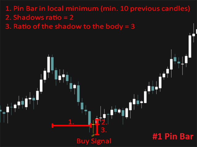 - Ratio of directed bars to the Pin Bar: Указывает на соотношение размера тел между направленными барами (трендовыми), а также телом разворотного бара (pin bar).