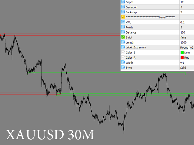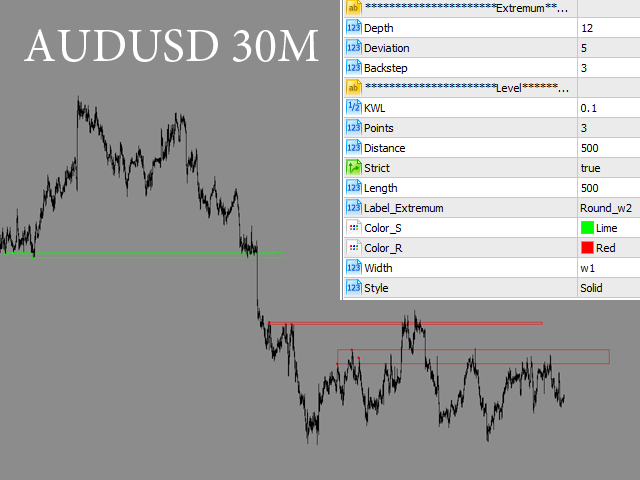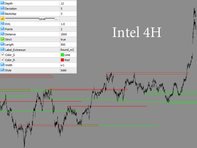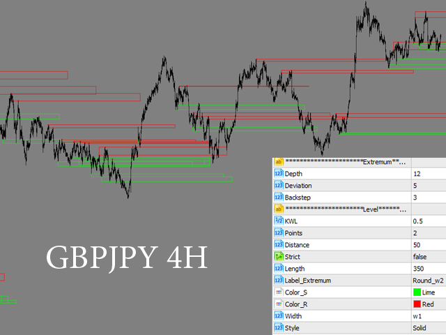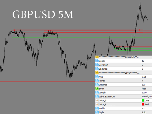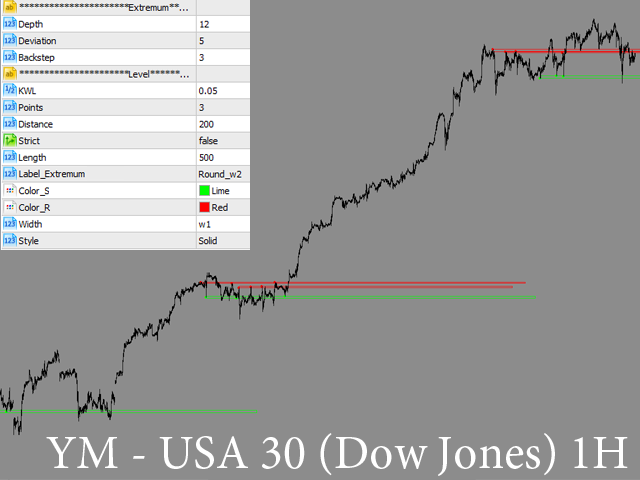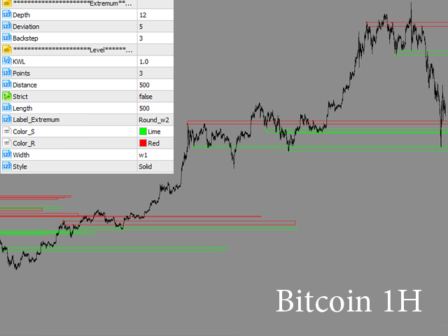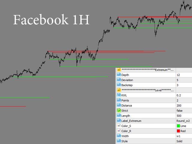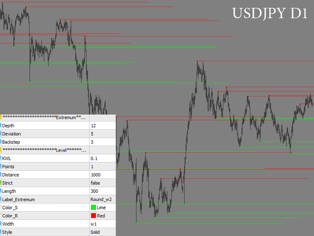 For stocks (for example: Google), it can be 0.01 on the minute chart and 1.0 on the daily chart.- Points - (main parameter) the number of points (extremums) required to plot a level.