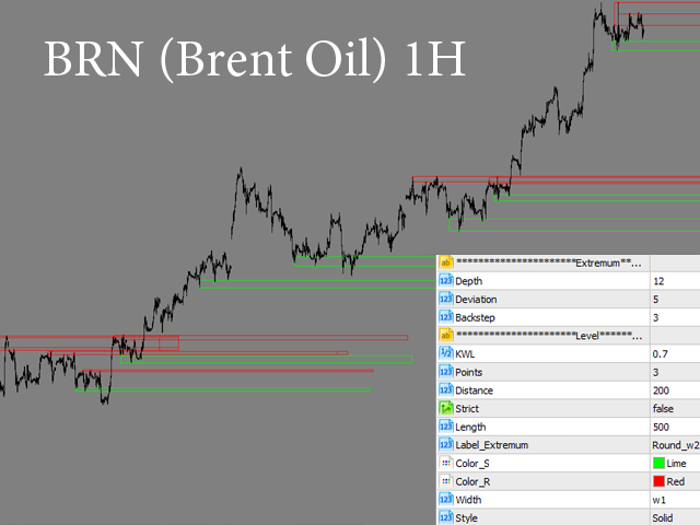 - Deviation - the minimum number of points, expressed as a percentage between the Highs and Lows of two adjacent candles (this parameter is responsible for the extremes used to search for the levels).