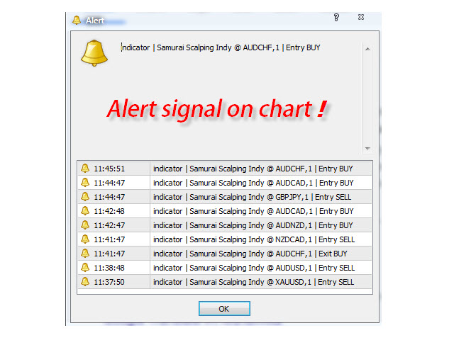 It'll alert signal with an audio or pop up on the chart for Entry BUY/SELL and Exit BUY/SELL alert signal.