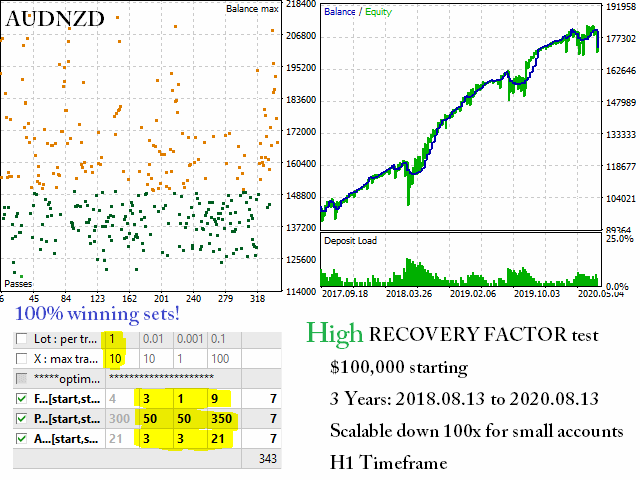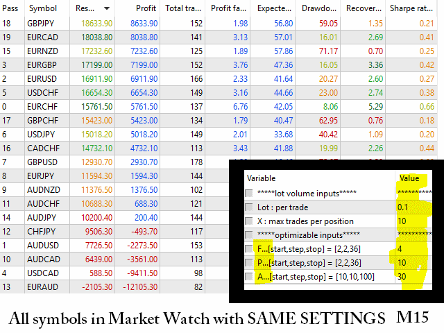 - 9/10 symbols with 100% of settings in profit (and EURUSD with 99% settings in profit)