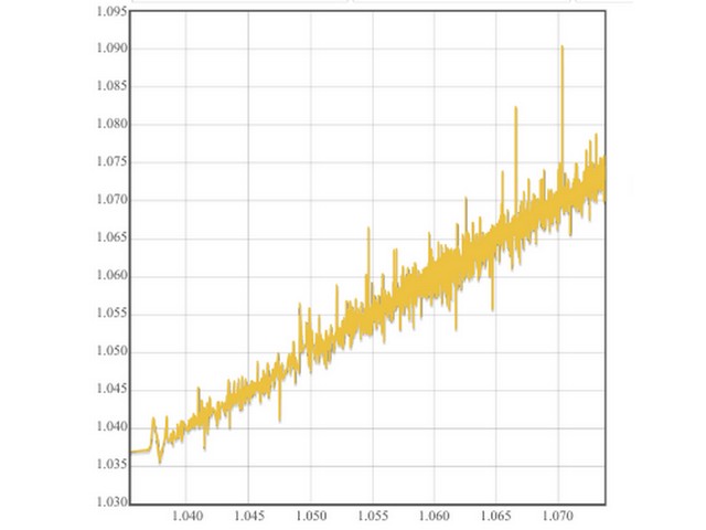 让我们看一下外汇市场价格变化的本质,而不是关注这些变化发生的原因。这种方法将使我们能够确定影响价格变动的主要因素。例如,让我们看一下欧元兑美元货币对和H1时间框架的开盘价。对于这些价格,我们构建了Lameray图(图1)。在该图中,可以看出价格变动基本上根据线性方程发生。要确定此等式的参数,可以使用最小二乘法。在这个特定的例子中,改变开盘价的等式采用以下形式:Open [i] = 0.99989 * Open [i + 1] +0.00013。让我们来看看这个等式如何充分描述价格变动。为此,我们删除线性分量并分析残差(图2)。从图中可以清楚地看出,这些残留物相当混乱,如果我们将它们视为噪声,我们可以得到一个相当简单的系统来预测下一个柱的开盘价,这是以该指标的形式实现的。