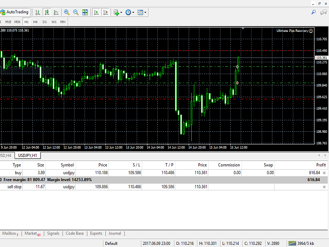 Ultimate Pips Recovery ( UPR ) is a unique, high quality and affordable trading tool, which is easy to use because knowledge of Forex trading is not much required to use this Expert Adviser. UPR does not require a specific time frame because it uses the technique that at every point, market will either go bearish or bullish. It opens a trade(say a buy trade) and immediately opens a sell stop position with a higher calculated lot size whose take profit is the same as stop loss of the previous opened buy trade and it's stop loss is the same as the take profit of the previous opened buy trade. If market goes bullish it hits the take profit and exits the trade for the day. If it goes bearish, it hits the sell stop trade and immediately opens a buy stop position in the same position as the first trade with the same parameter as that of the first trade but with a higher calculated lot size to compensate for the same take profit. It continues in this way, until it hits the take profit stop loss which gives us our target.
