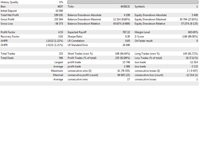 В советнике используются оптимальные значения Take Profit и Stop Loss . Размер лота автоматически подстраивается под размер депозита.