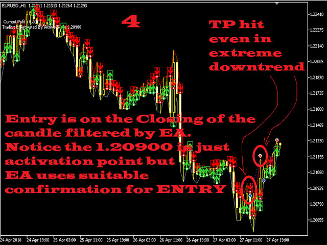 The entries are judged by criteria set in the inputs of the EA. The EA primarily looks for strong candlestick patterns and makes an entry based on Trend trading options and trend detection filters as well.