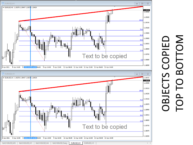 此脚本允许您将任何类型的绘图对象(如趋势线、斐波那契回撤等)复制到一个或多个其他图表。