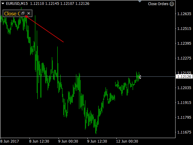 The "Close" button closes all orders on the symbol of the chart, on which the EA is running.