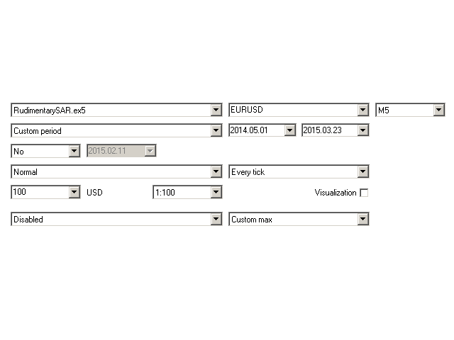 The levels of Stop Loss, Take Profit, Trailing Start and Trailing Stop are determined automatically based on the distance from the price to the distant (preliminary) point of Parabolic SAR. This is a basic distance, it can be adjusted through the field StopsFactor, which increases or decreases the distance (by default it is 3 times increased). Stop Loss and Take Profit are equal to this distance. Trailing Start is half of the distance, and Trailing Stop is equal to 1/3.