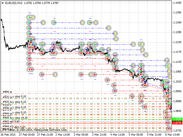 专为活跃市场和快速货币对的日内交易而设计。它是一个具有封闭平均系统的网格顾问。在快速和激进的货币对出现存款减少的情况下,闭环平均系统是一种稳定的盈亏平衡策略。 EA 在两个方向放置一个挂单网格,如果出现负仓位,则在价格波动突破 40-60 点走廊时将其锁定。并且它开始显示在网格内部(无需在两个方向移除暴露的网格)以达到盈亏平衡。并且报价在哪个方向(向上或向下)中断通道并不重要。 EA 不会让市场头寸回撤超过 25-40 点,止损和止盈会根据情况和报价的方向或反转不断修改。随着强劲的趋势运动,机器人只是跟随趋势。