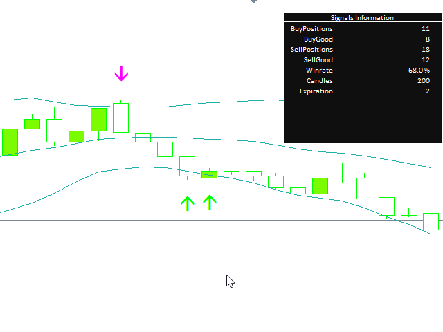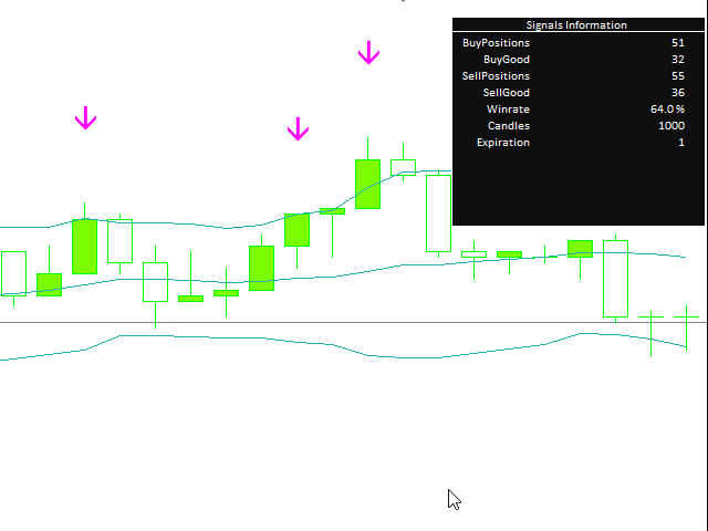 Стрелочный индикатор, выдающий сигнал при пересечении канала боллинждера. Сигналы выдаются в виде стрелок и подходят для торговли бинарными опционами.