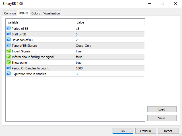 - Invert signals - Возможность давать инвертированные сигналы (для работы по тренду)