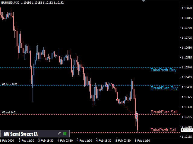 Size of Virtual TakeProfit (in Points) - Size of TakeProfit in points. For the current group of orders from the breakeven price