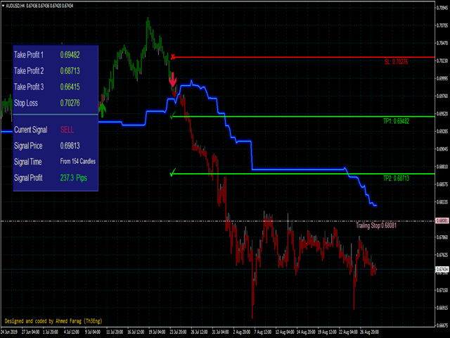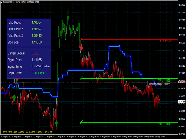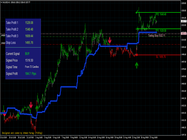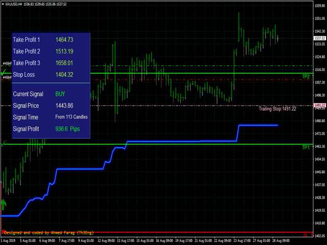 And Finally it draws a very helpful Box on the left side on the chart includes (take profits and Stop loss points prices, the fully current signal details).