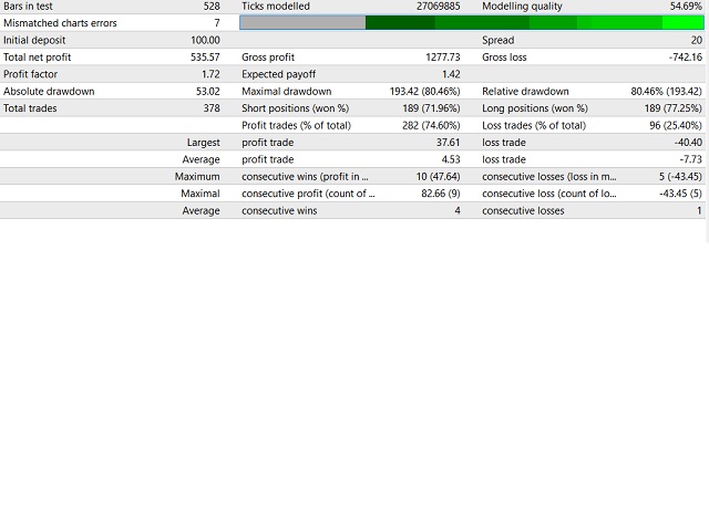 - Currency Pairs: actually all pairs are possible, but best results found with EURUSD. Pairs including JPY need a larger balance
