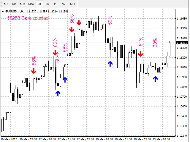 Future Candle One Candle is an arrow indicator of candlestick patterns, based on the calculation of historical statistics. It identifies and calculates patterns consisting of one candle.