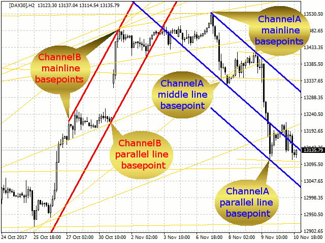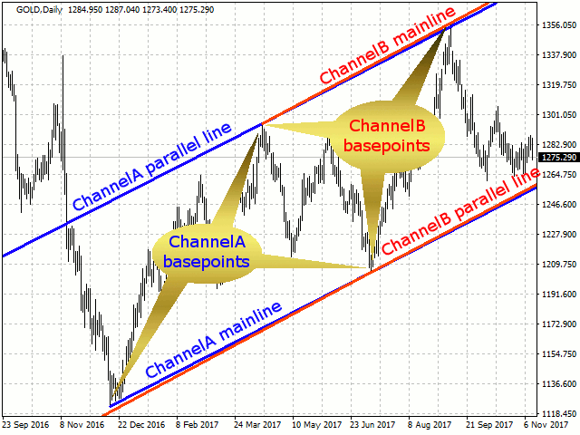 This utility calculates and draws lines over the chart. There are two types of channels: