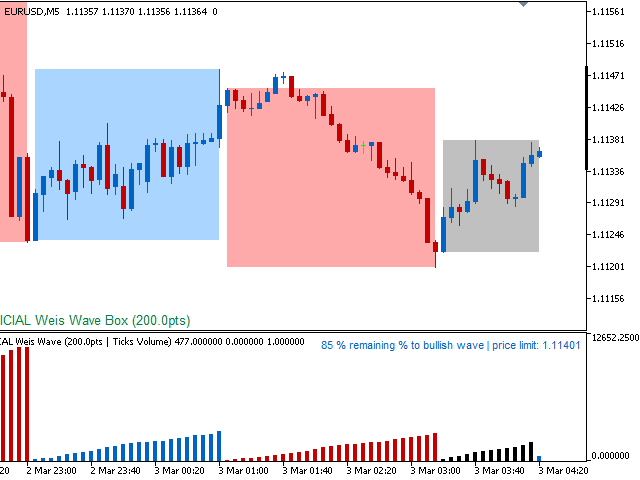 - 3 types of boxes: bullish, bass and unknown. The unknown box arises when prices move in the opposite direction of the current box.