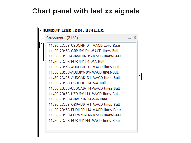请注意,由于多时间框架功能,图表上不会绘制买入/卖出建议或 MA 线。我强烈建议将指标放在干净(空)的图表上,上面没有任何其他可能干扰扫描仪的指标。