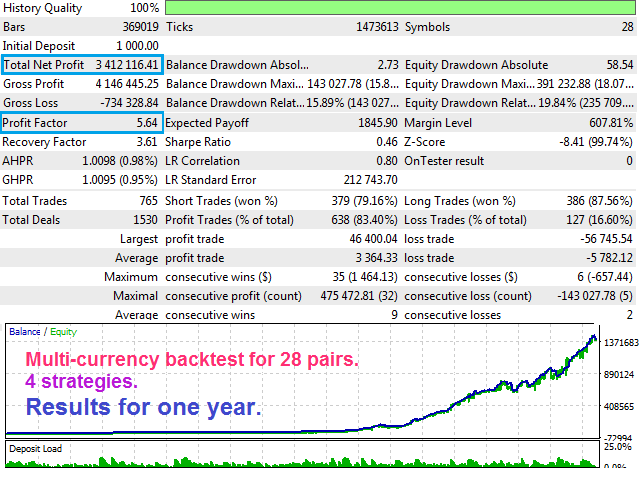 Attention!!! Do not try to test the EA in the Tester - it is simply impossible, because the EA opens positions on different 28 instruments. The tester is able to test only one pair.