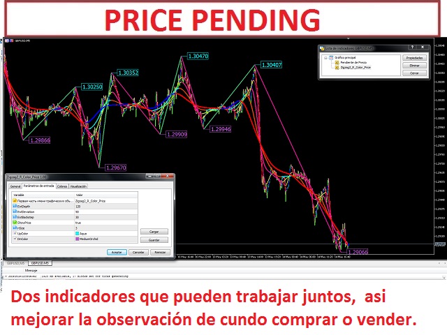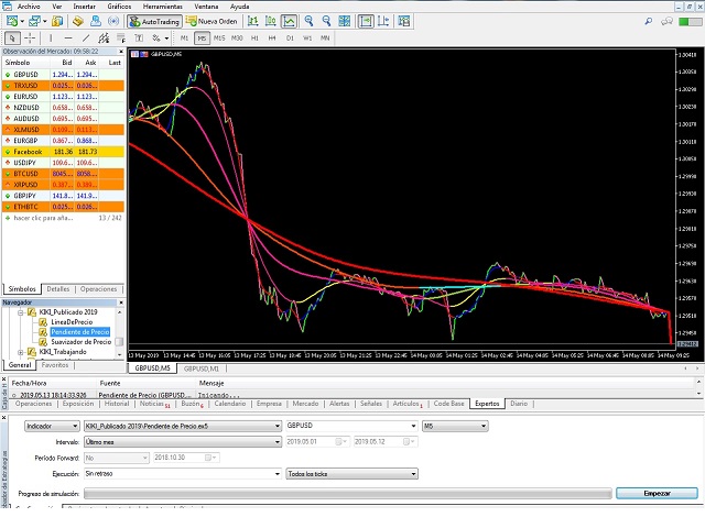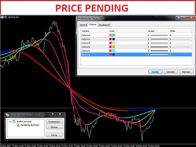 Indicador en base a la pendiente de la linea de precio, dibuja una línea de color cuando sube a base de los precios que previamente has sido procesados o linealizados, y cuando baja la pendiente la linea linealizada toma otro color.