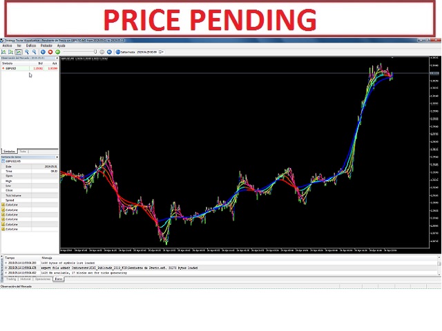 En este caso se a considerado 6 lineas de diferentes procesos desde pendientes largas hacia las cortas, observándose que cuando coincidan las pendientes se produce un máximo o mínimo, lo que a simple vista nos permitirá hacer una COMPRA O VENTA.