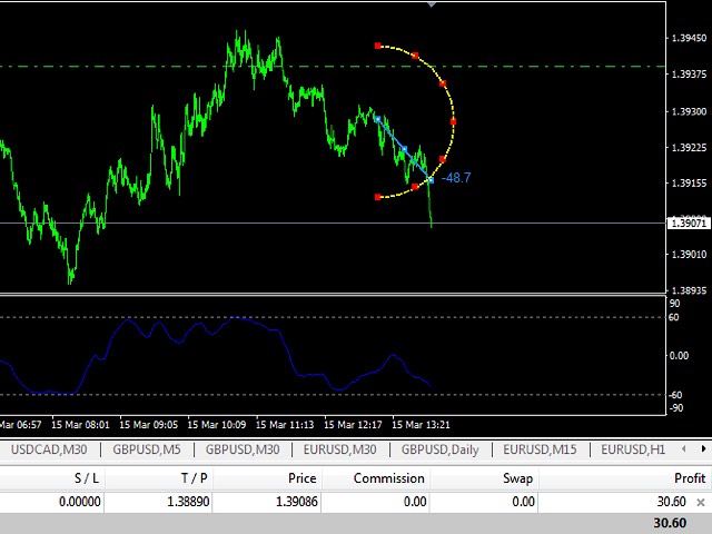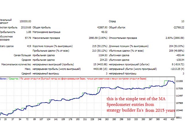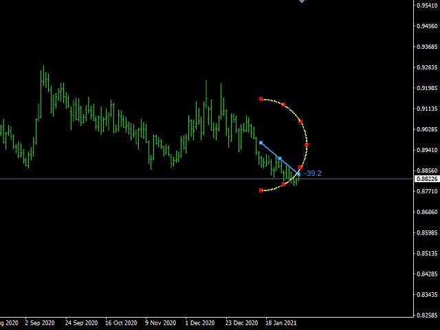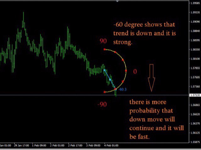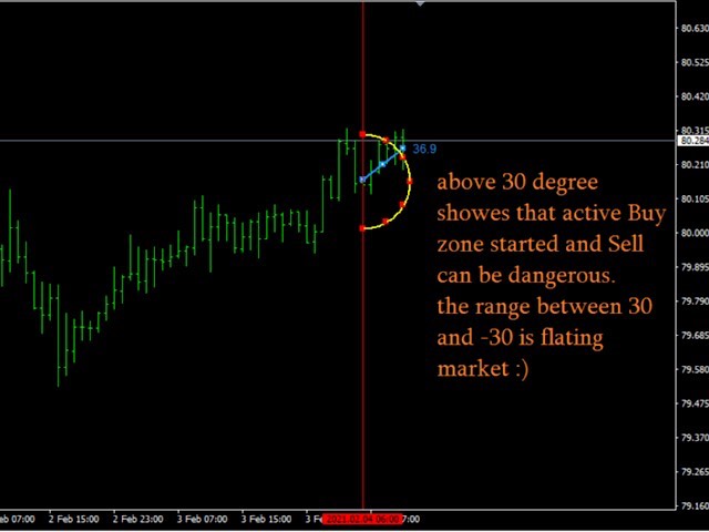 Non standard attitude to the standard moving average indicator. The essence of the indicator is to determine the strength and speed of the price direction by determining the tilt angle of the moving average. A point is taken on the fifteenth MA candle and a point on the last closed MA candle, a straight line is drawn between them, it is movable and on a hemisphere shows an angle of inclination from 90 degrees to -90. above 30 degrees is the buying area, below -30 degrees is the selling area. above 60 degrees the zone of strong purchases below -60 strong sales. The indicator is an excellent addition for any trading systems as a filter and also can be used as the main tool for new trading systems, since it separately shows stable growth in strategy testers. All numbers above are approximate, indicator contains the following settings: StartBar (number of candles from the most recent to determine the length of the speedometer needle); maPeriod; maPrice; maMethod; notifications (push, voice, mail) and also possibility to show history with line moving from 90 to -90 range (please note this line window showes history only and does not show overbought or oversold situations).