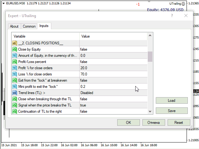 - Trailing stop by: - 7 instruments.