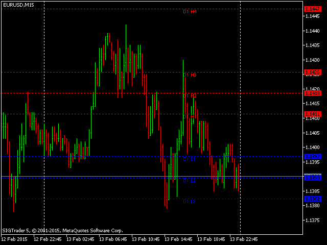 - ShowHistoricalIndicatorValuesOnChart - (YES/NO) this parameter is for choosing whether to draw historial pivots values on the chart. In order to display pivots for the current session only set this value to NO.