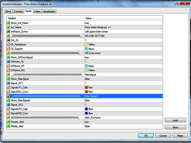 - SR_ArrowSz: 1. - it is the arrow size for signals when the price breaks a support or resistance level.