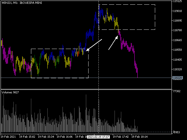 A concepção do indicador é ser utilizado para operações em saída de consolidações na direção da tendencia do movimento.