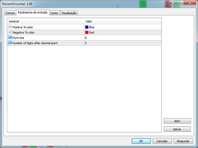 - Negative % color: set the desired color when % is negative.