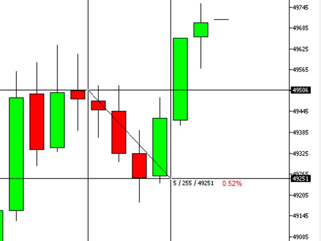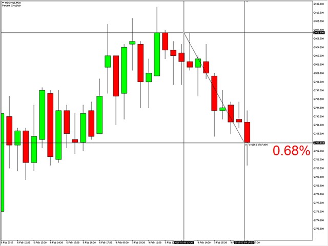 Just attach the Percent Crosshair indicator in the chart, select crosshair mode at toolbars or press "Ctrl+F" and start using the crosshair as you always do! The percent measure will be next to the indicative price.