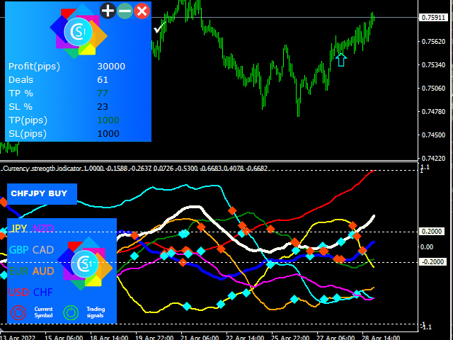 The indicator works according to my algorithm. The algorithm analyzes 28 major currency instruments.