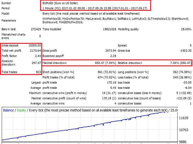 - WinPoints: 目标盈利点数。这个参数设置太小,盈利减少,反之,盈利增加,但同时会增加风险。