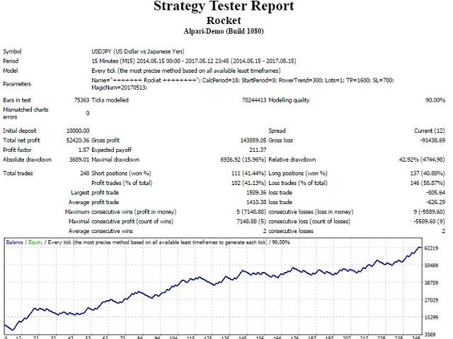 It is recommended to use the EA on 5-30 minute timeframe on any currency pair with high liquidity.