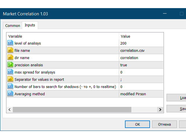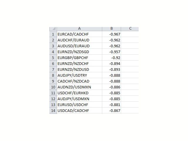 脚本分析设定时间段内的市场观察中的所有交易品种。 结果显示在“专家”选项卡和指定文件中。 为了便于查看和编辑,结果显示在csv文件中。 皮尔逊公式用于计算。 一对相关系数值接近 1 意味着这些对移动几乎相同。 接近 -1 的值意味着对以相同的方式移动。 这个工具对于那些由于其他货币对的变动而使用对冲的人来说非常有用。 参数: glubanal - 酒吧中的分析深度 InpFileName - 输出文件名 InpDirectoryName - 输出目录 precision - 提高精度(使用OHLC而不是O),增加了计算的精度,但在计算过程中加载更多的处理器和网络 spreadmax - 计算最大传播最大传播最大传播最大传播最大传播最大传播最大传播最大传播最大传播最大传播最大传播最大传播最大传播最大传播最大传播 ValuesSeparator - 接收值的值分隔符分隔符字符 ShadowFinder -确定滞后/前导阴影的条形数量。 如果为负值,则表示阴影应位于主线对之前。